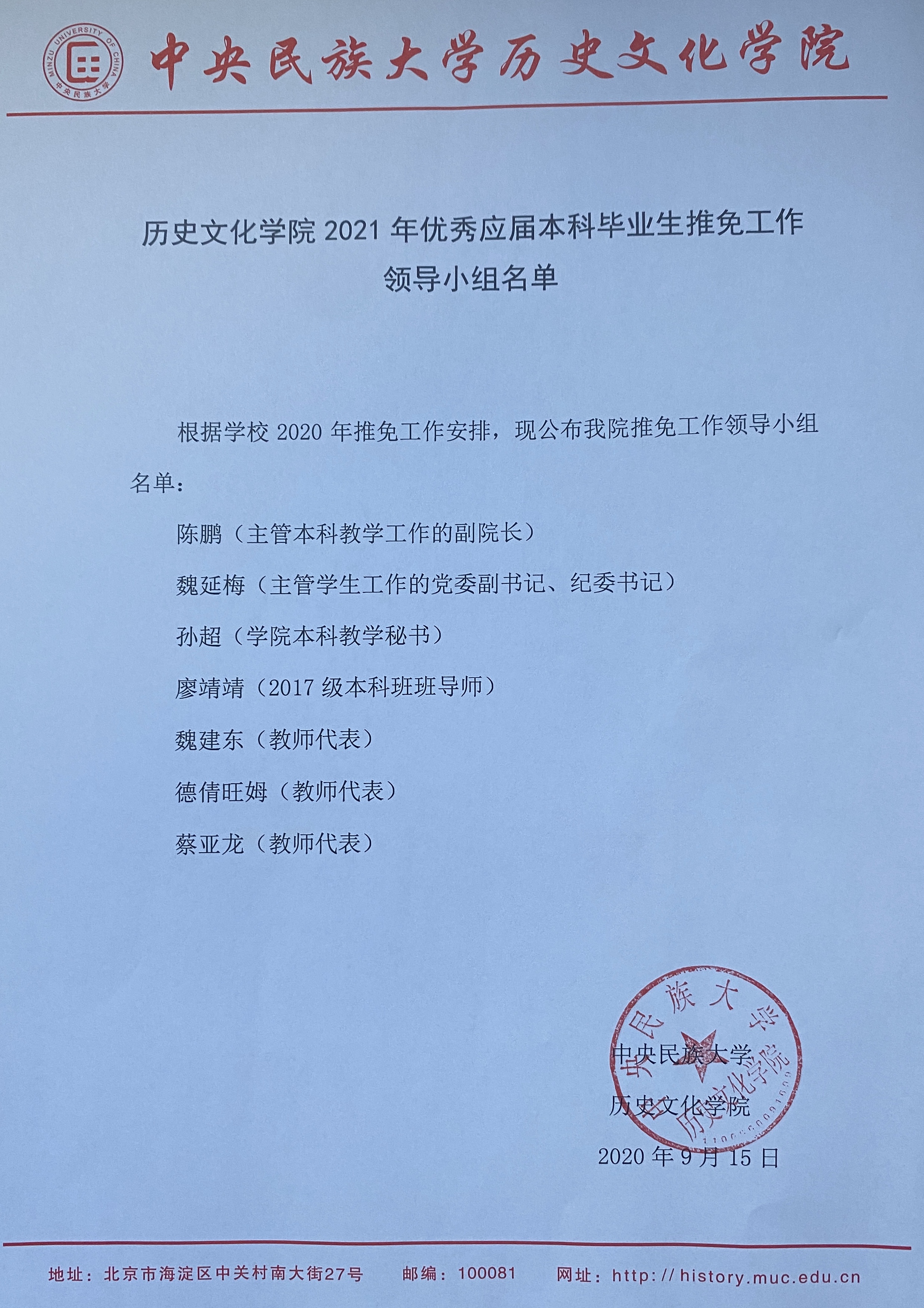 伊莉影片 2021年优秀应届本科毕业生推免工作领导小组名单