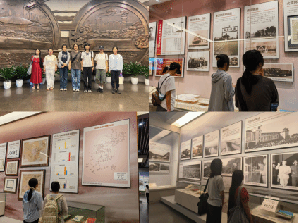 第五小组学生围绕“北京与中国近代铁路”主题开展毕业实习。第一天,小组成员通过系统研读《北京历史地图集》《京奉铁路研究》《日本车站史》等文献,重点关注京张铁路的自主建设与其在“自强”思潮中的象征意义,初步理解了北京作为铁路枢纽的历史演变。6月24日,第五小组集体前往中国铁道博物馆正阳门馆实地调研,参观京张与京奉铁路展区,获取了大量实物资料,如早期车票、通信设备和列车模型,加深了对文本内容的感性认知。通过“文献—实地”的结合,小组成员认识到铁路作为交通工程的同时,也是近代中国政治、经济与城市结构变迁的重要媒介。