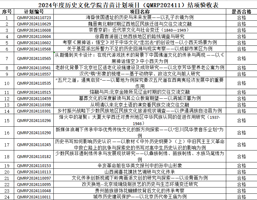 2024年大创项目、青苗计划、2022级强基计划大创项目结项成绩公示