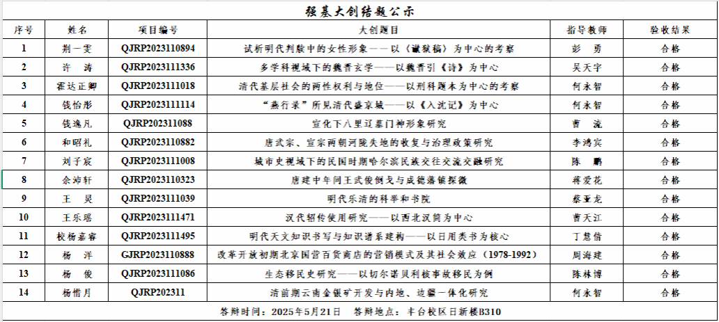 公示时间为:5月29日-31日,如有问题,请联系教学办