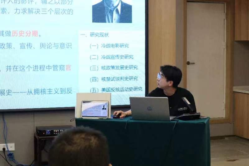 赵震宇同学的《利刃高悬:核武器与美国冷战宣传研究 1945-1990——以核电影为考察对象》以影像史学的研究视角,将核电影作为研究对象,以冷战时期的核政策发展史、核禁试谈判史、“文化冷战”宣传史及反核运动史为研究背景,研究核电影本身的历史脉络、核电影与核问题的互动史及核电影所反映的核意识形态发展史。胡晔老师认为文章的题材具有一定创新性,但部分表述仍显夸大,对于核电影的界定不够清晰,应该借鉴更多传播学等学科的研究范式加以阐释。