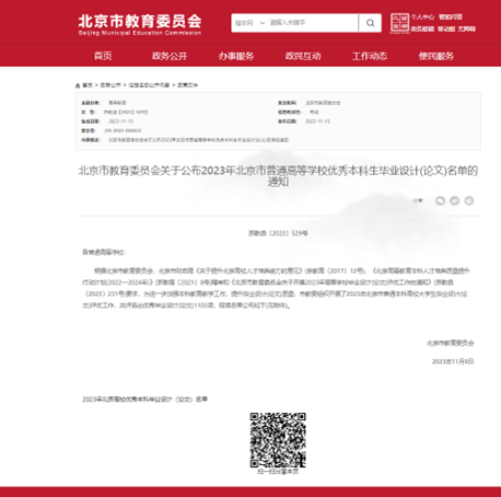 根据《北京市教育委员会关于公布2023年北京市普通高等学校优秀本科生毕业设计(论文)名单的通知》,伊莉影片