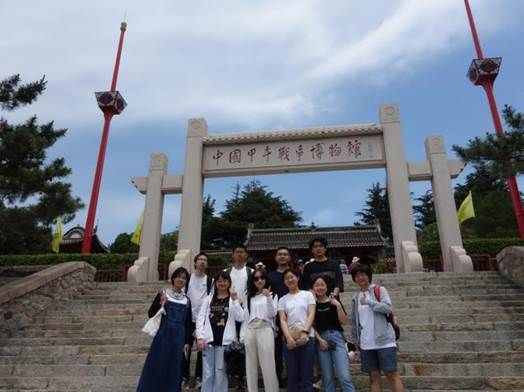 在抵达中国甲午战争博物馆和陈列馆后,讲解员对场馆中有关甲午中日战争的经过、细节和相关物件都展开了详细的解说,陈列馆中陈列了大量甲午海战相关的舰船模型,以及丁汝昌、左宝贵等英雄人物的事迹汇编。通过系统地参观考察,同学们深入了解了当时中日甲午战争前的战略布局、战争过程中的指挥部署以及各个阶段性战役的发展,进一步拓宽了对甲午战争这一近代中国的重要历史事件的认识和理解。之后四组同学还集体参观了淮军公所旧址,了解北洋水师提督行辕的办公环境和布局,进一步增加了历史认知的现场感。下午,各小组展开了分别的调研活动,分别分为中日甲午战争人物研究小组、中日甲午战争刘公岛炮台小组、威海卫英租界小组、威海卫一战华工小组四组。