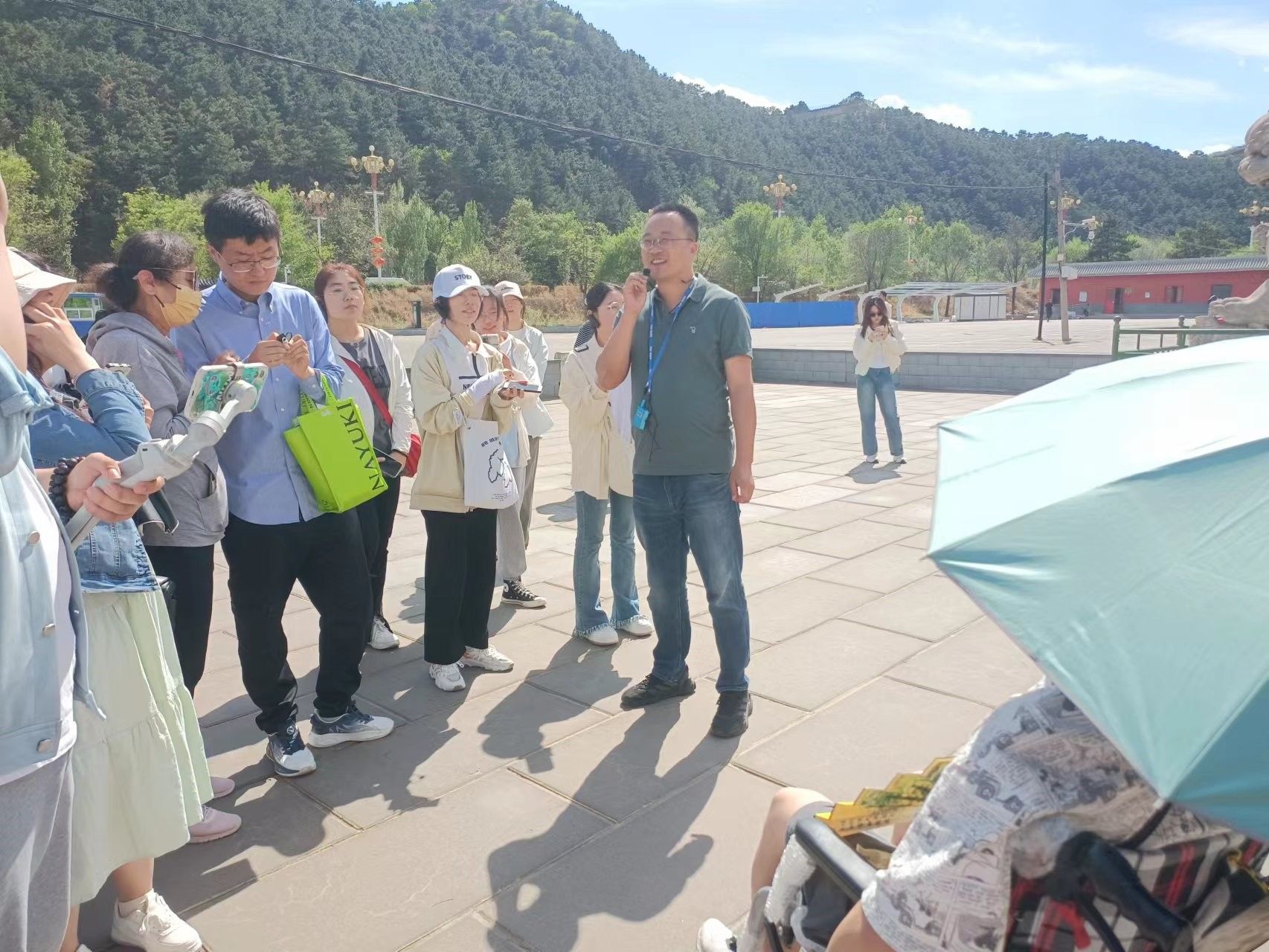 5月13日上午,经过一晚修整的老师和同学们精神抖擞、整装待发,前往本次教学参观的第一个目的地——承德避暑山庄。承德避暑山庄始建于康熙42年(1703年),完成于乾隆57年(1792年),历经89年建成,是世界上现存最大的皇家园林。在避暑山庄门前,河北民族师范学院的赵艳玲老师为我们介绍了避暑山庄的历史概况,以及景区门前建筑和门匾的由来。进入景区后,博物馆的陈老师带领我们游览参观,讲解博物馆中陈列的文物历史和避暑山庄的建筑特色。赵老师带领我们来到万壑松风。赵老师称,北京的园林和避暑山庄的园林有四处不同。第一,万壑松风的建筑是根据康熙自己的喜好而建,和传统北方园林有所不同;第二,不同时期园林建筑面积不同;第三,万壑松风坐南朝北,和传统园林坐北朝南不同;第四,是爷孙间的深厚情谊和帝王之家的薄凉之情间的不同。这些散布在避暑山庄中的建筑,每一座都有着深厚的历史底蕴,我们跟随着的老师的脚步,一点点揭开这些神秘的面纱。参观结束后,同学们不舍地和老师告别,在景区休息吃饭后前往下一个景区。