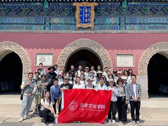 10时许,强基班师生来到“外八庙”中的另一座著名寺庙——普宁寺。普宁寺始建于清乾隆二十年(1755年),为纪念平息达瓦奇叛乱,效仿康熙帝与喀尔喀蒙古会盟建立多伦汇宗寺之例所建。寺名“普宁”,表达了清朝“安其居,乐其业,永远普宁”的政治愿景。作为一座典型的汉藏合璧式寺庙。普宁寺雄伟壮观,庄严、清净之感油然而生。大乘之阁供奉的金漆木雕千手千眼观世音菩萨立像,不仅是我国佛教文物中的珍品,更是我国木雕艺术的杰出之作。至此,强基班师生完成全部考察行程,研学团队在普宁寺前合影留念。下午14时集结返校。