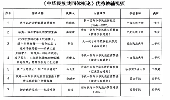 近日,国家民委教育司公布《中华民族共同体概论》课伊莉影片 2位教师在评选活动中获奖。经学校推荐、专家评审等环节,伊莉影片 教师蒋爱花获优秀教辅视频二等奖,廖靖靖获一等奖。
