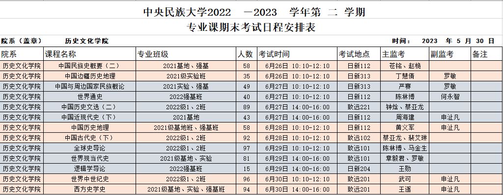 2022-2023-2学期期末考试时间安排