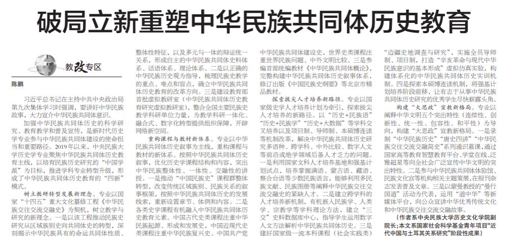 历史学专业在“中华民族共同体历史教育”的教改成果。