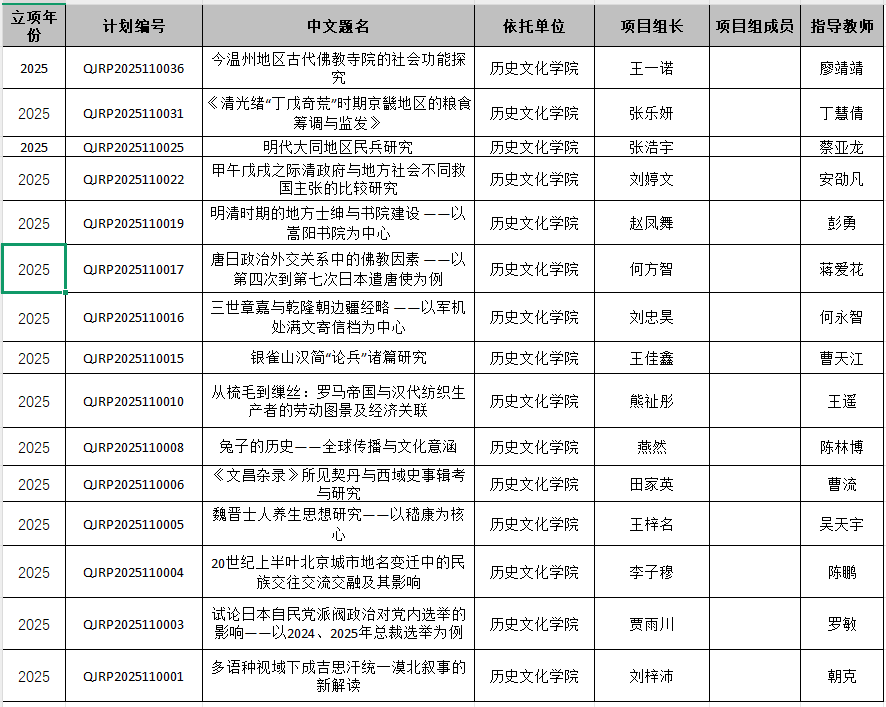 2024年历史学(强基计划)大创项目中期检查与2025年历史学(强基计划)大创项目立项公示