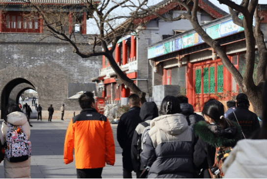 从中国人民抗日战争纪念馆出来,大家步行在宛平古城。宛平城古城墙,其结构处处体现着“拱卫京师”的初始使命。宛平古城城门结构极为精简而坚固,仅设东西两门,东曰“顺治门”,西曰“威严门”(明代初建时称“永昌门”)。两门均配有瓮城和城楼,形成双重防御体系。古人评价其“局制虽小,而崇墉百雉,俨若雄关”。这座因军事而生的坚城,在近代中国的历史烽烟中,成为全民族抗战起点的铁血见证。七七事变后二十余天,守城的中国军队多次反击日军,直至7月29日宛平失守。至今,宛平城东侧城墙上仍特意保留着那段长约30米、弹孔密布的残墙断壁,累累伤痕无声诉说着当年炮火的猛烈与战斗的惨烈。