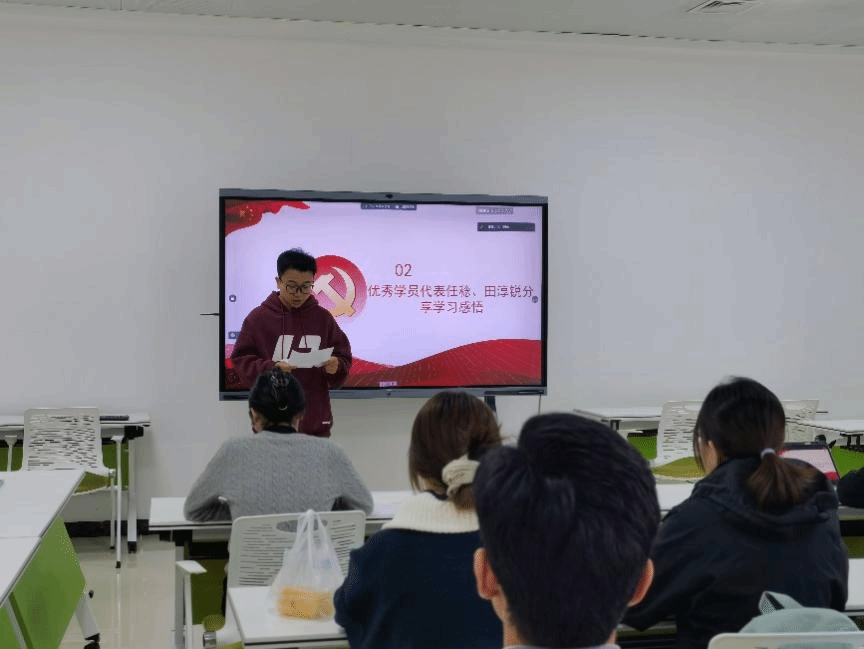 本期积极分子培训班的优秀学员代表任稔、田淳锐进行了分党校学习的交流分享。