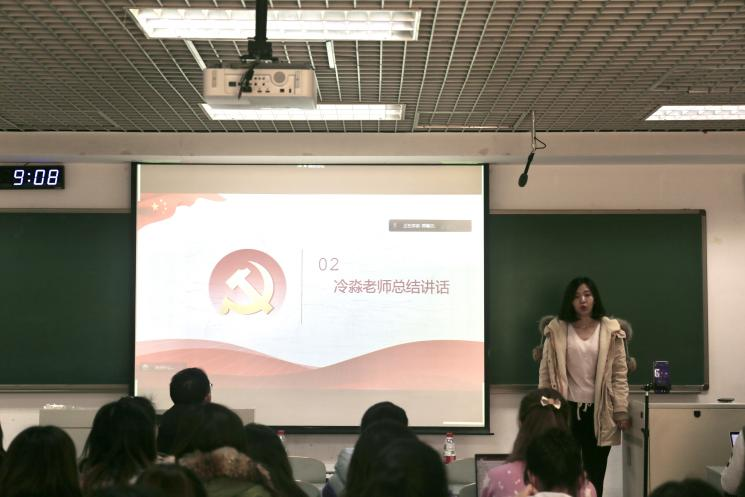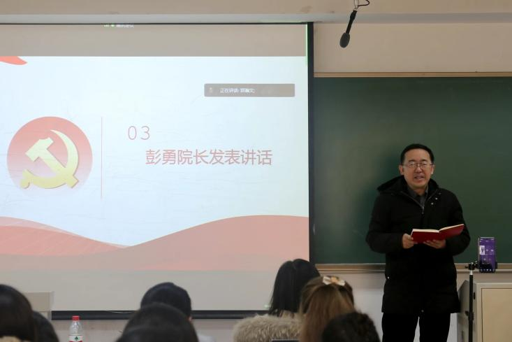 有着优良的传统,以培养又红又专的研究型人才为目标,并列举了学院优秀青年教师、共产党员蔡亚龙的事迹,鼓励大家向蔡老师学习,既能认真钻研专业知识,又能尽职尽责的完成党务工作。最后,彭院长鼓励大家要不断提高思想觉悟,坚定理想信念,努力学习专业知识,为中华民族伟大复兴贡献青春和力量。