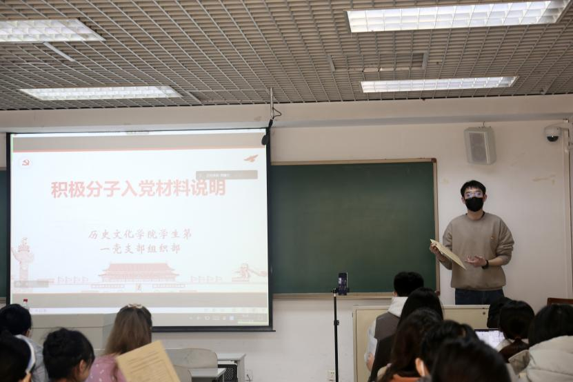 学生第一党支部青年委员郭瀚文为在座的入党积极分子详细讲解了思想汇报、积极分子考察表等入党材料的填写要求与书写格式。