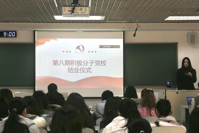 第八期积极分子党校培训结业仪式在海淀校区文东1106教室顺利举行,丰台校区采用同步直播的形式线上参与。