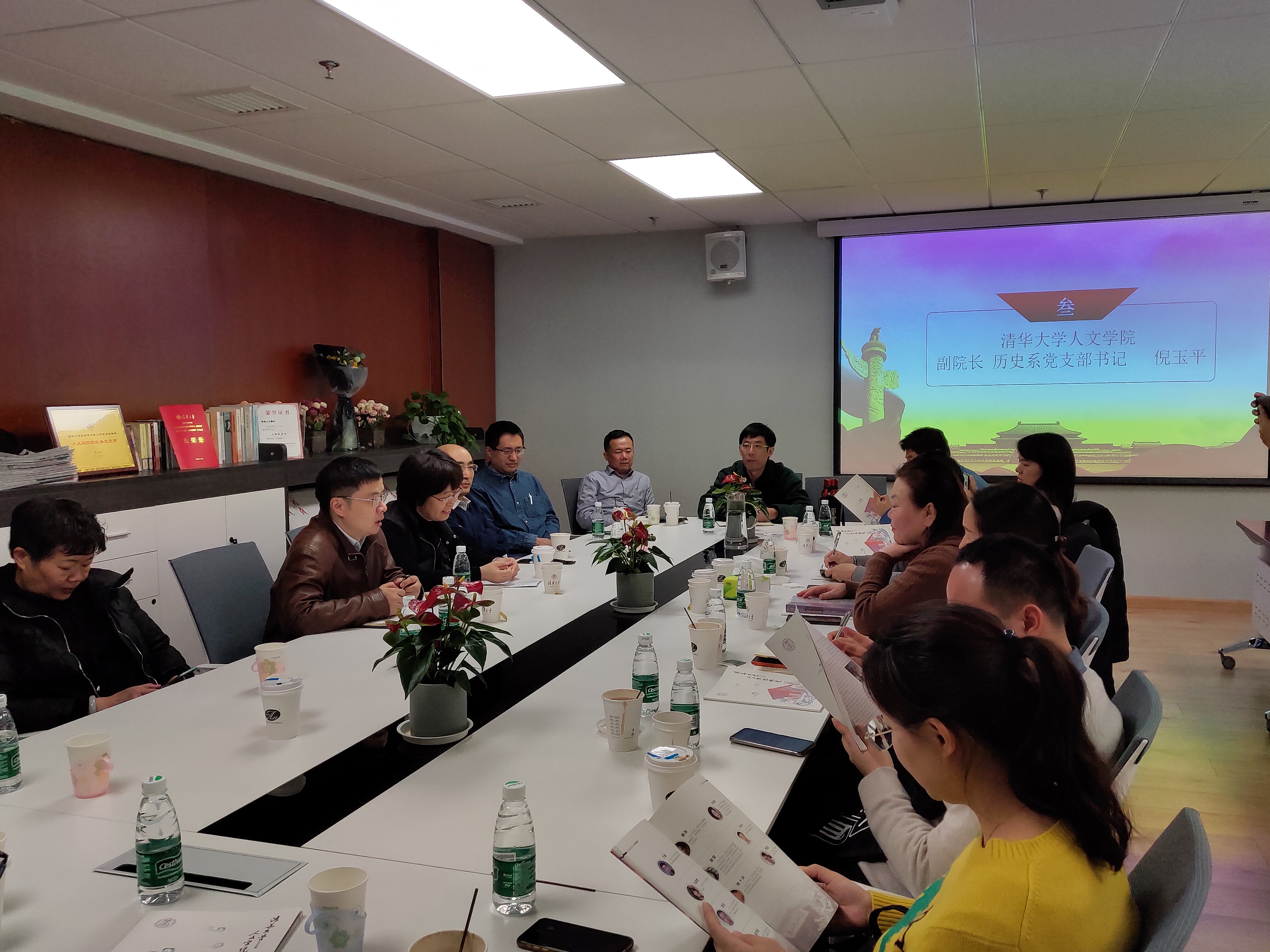党委及教工党支部一行十人赴清华园,与清华大学历史系围绕党建工作举行座谈交流。清华大学人文学院副院长、历史系党支部书记倪玉平主持会议,双方单位20余名党员教师参与了交流。