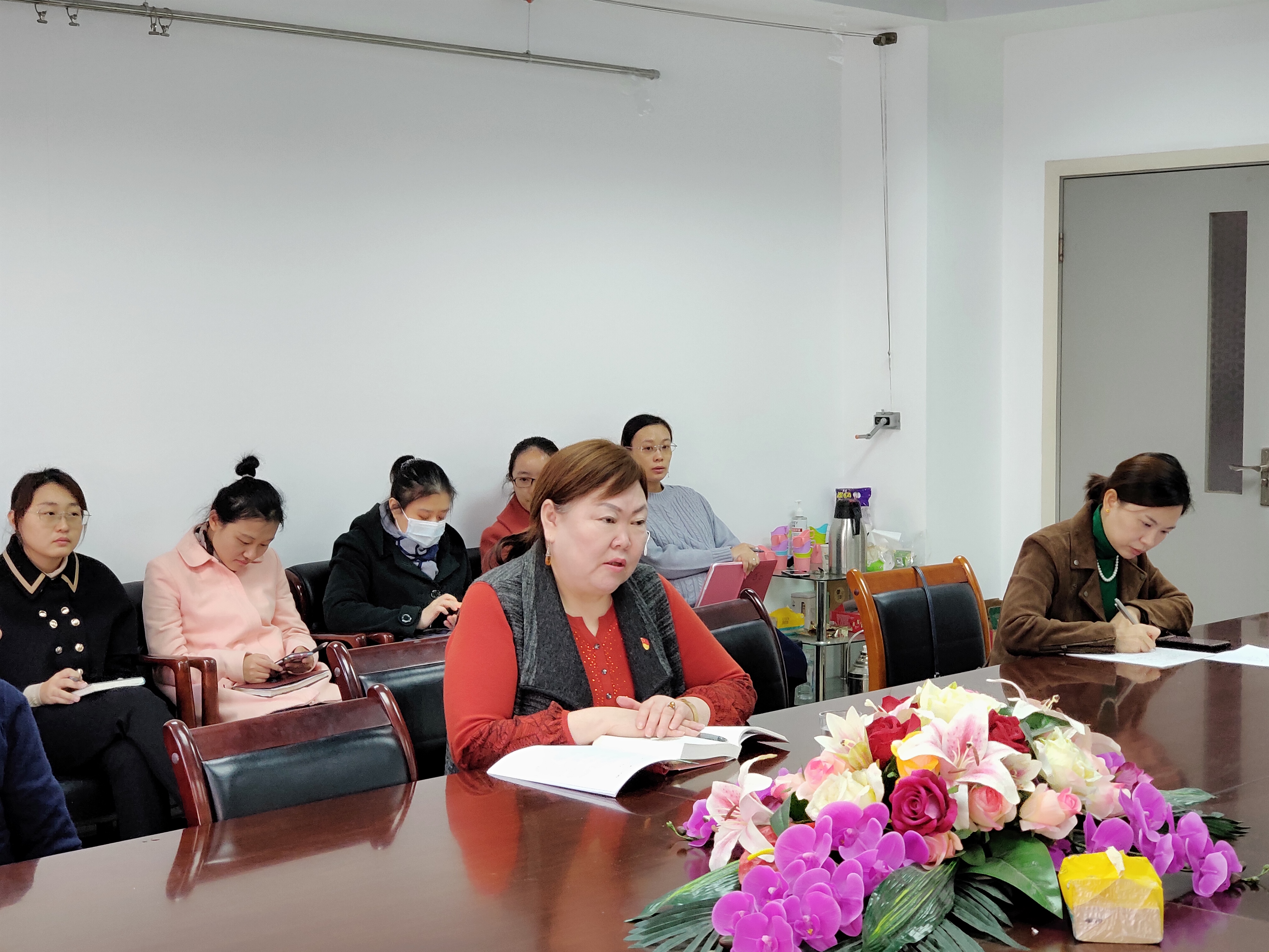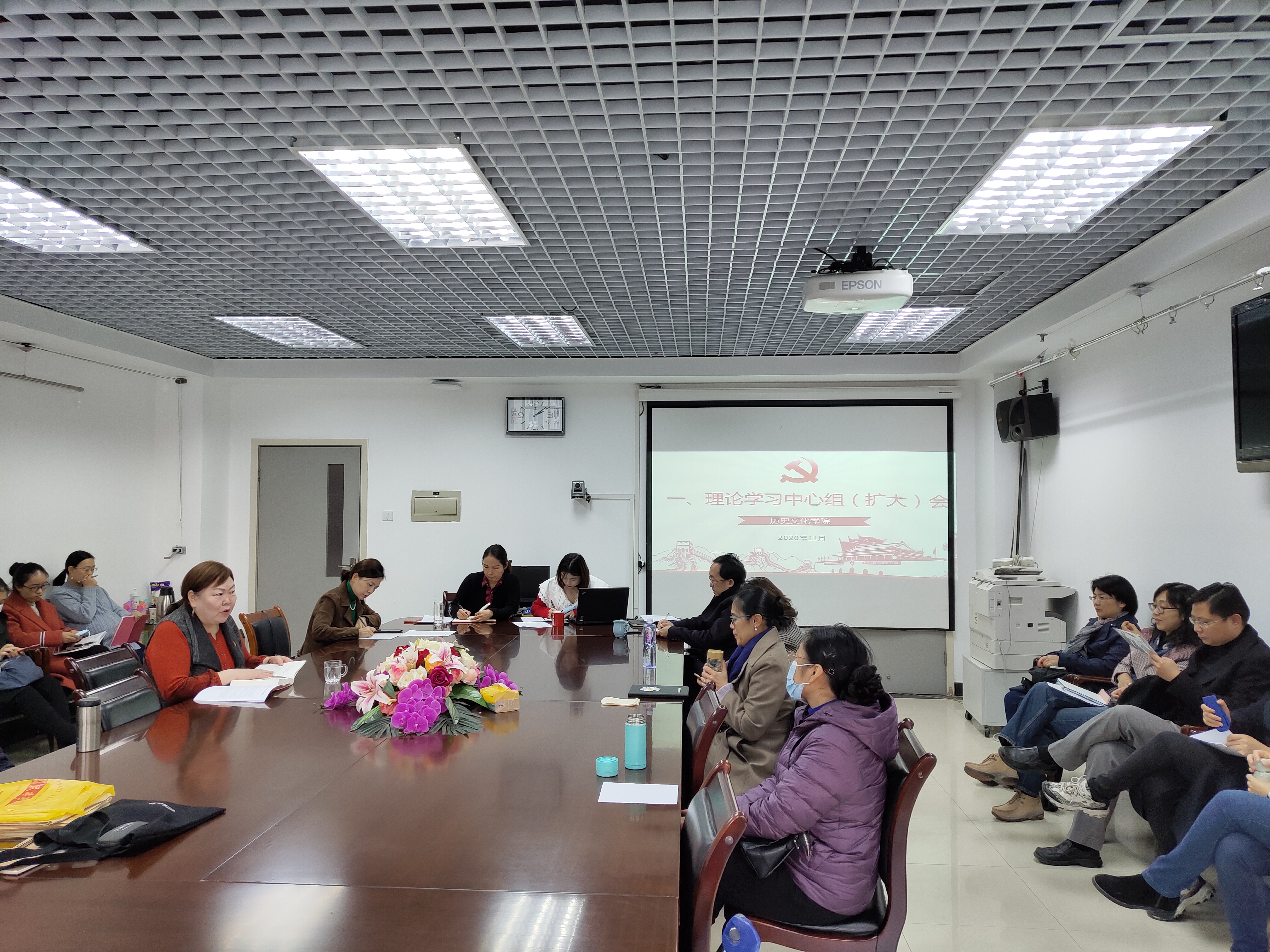 党委于文华楼西区1327会议室召开理论学习中心组(扩大)会,会议由刘翠兰书记主持,全体教师参加。会议主要学习内容为党的十九届五中全会精神,重点学习《中共中央关于制定国民经济和社会发展第十四个五年规划和二〇三五年远景目标的建议》。