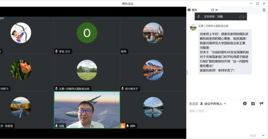 《中国与周边国家关系史研究》课程结合,开拓了学生的视野。河南师范大学国际政治系王勇老师就“冷战时期IEAE安全保障机制对于无核国家借口和平利用原子能进行核扩散的限制性作用”问题与刘磊教授进行了深入探讨。最后,本次讲座在老师和同学们的热烈掌声中圆满结束。