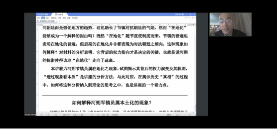 李鸿宾教授以腾讯会议的形式举办了题为《唐后期河朔节镇员属本地化现象说明了什么?——背后意涵的方法论诉求》的学术讲座,本次讲座是伊莉影片