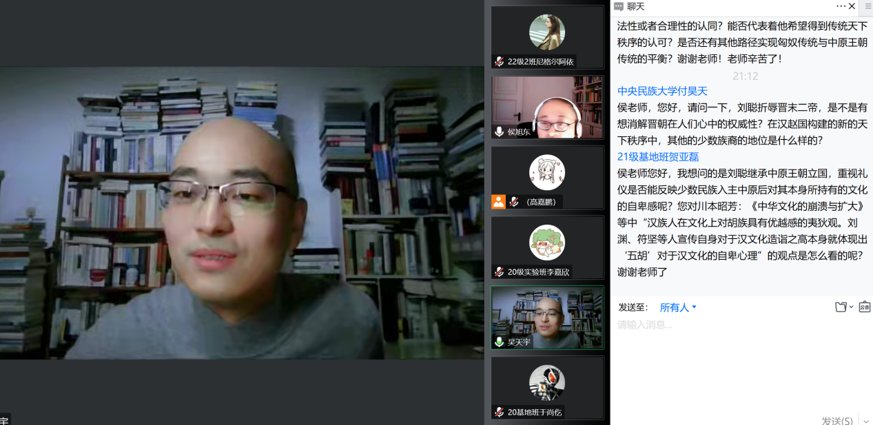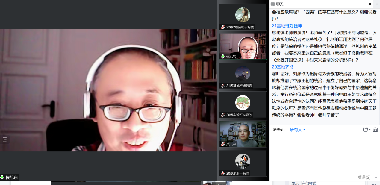 侯旭东教授的讲述结束后,吴天宇老师进行了简要总结。侯教授的讲述生动有趣且具有学术性,这种佐之以丰富的地图资料及实物照片的方式更有助于同学们理解。讲座的最后,同学们针对本场讲座的相关内容开展了积极的线上提问,侯旭东教授对同学们提出的问题作了详实的解答。