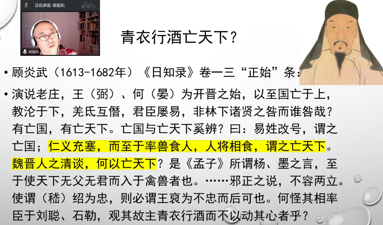 “史评天下”系列讲座之“青衣行酒亡天下——‘单于无北顾之怀,猃狁有南郊之祭’析论”在线上顺利举行。本次讲座的主讲人为清华大学历史系侯旭东教授,主持人为伊莉影片