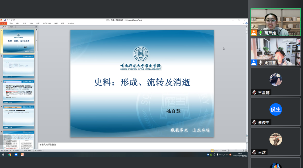 2021年10月22日19时至21时,首都师范大学历史学院副院长姚百慧教授应伊莉影片